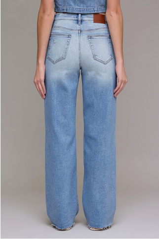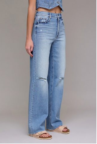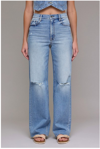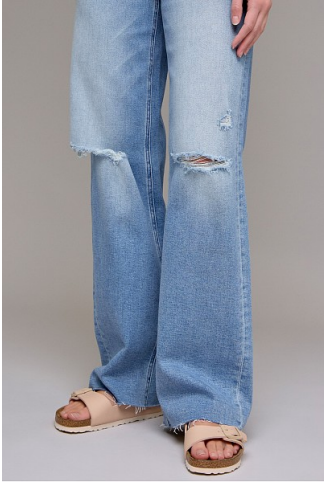 Hidden medium light wash slightly stretchy distressed knee 33” inseam dad jeans